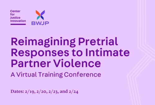 Reimagining Pretrial Responses to Intimate Partner Violence is a multi-day virtual training conference hosted by the Center for Justice Innovation and the Battered Women’s Justice Project, bringing together the justice system and community stakeholders to explore more effective pretrial practices in intimate partner violence cases.